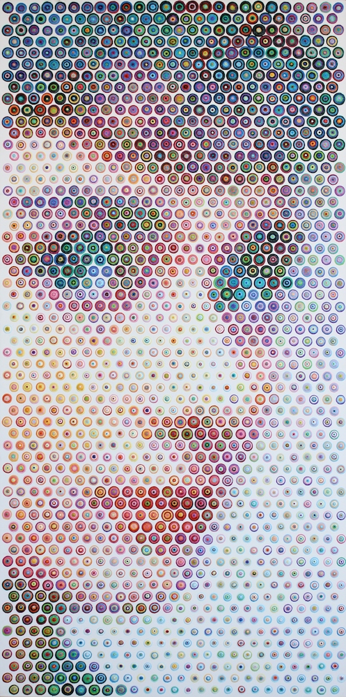 Gli studi in arte, psicologia e neuropsichiatria fanno della ricerca di Gavin Rain una indagine assolutamente unica e trasversale. L’artista riesce a tradurre l’attività conoscitiva in espressione visiva: partendo dal dato percepito, rielabora l’immagine e la riorganizza in strutture formali. I cerchi colorati interferiscono con la percezione dell’occhio e, a seconda della distanza da cui si osservano, mostrano un ritratto accuratamente definito o un’immagine completamente astratta.