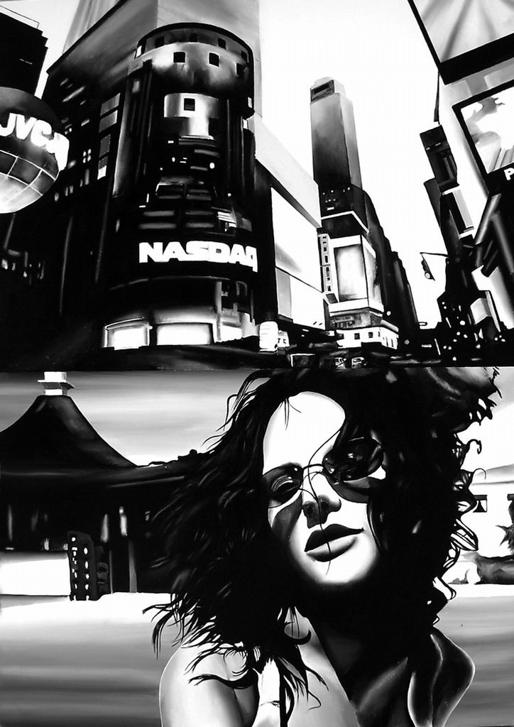 Tecnicamente molte delle opere sono costruite giustapponendo o sovrapponendo due o più immagini tratte da contesti mediatici differenti (immagini ottenute da video musicali, films, pubblicità, documentari o da giornali).