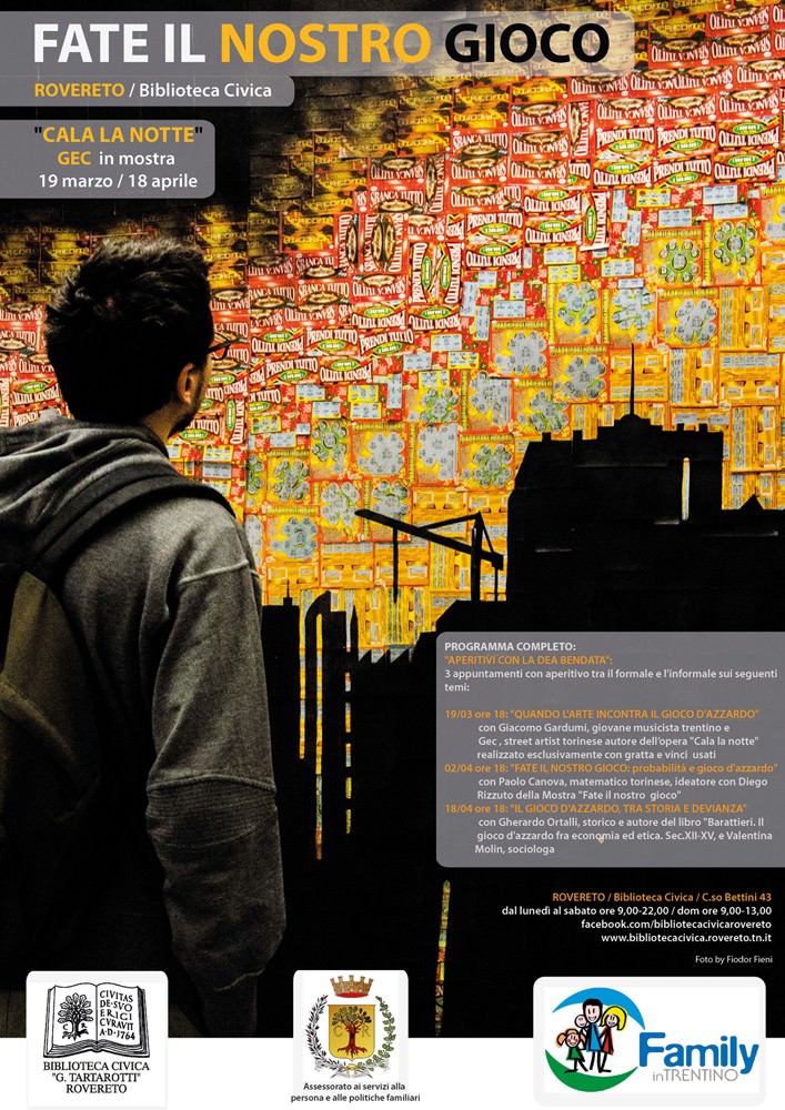 Prosegue il giro d’Italia dell’opera “Cala la notte”, dopo Torino, Siena, Bologna e il turno di Rovereto, in concomitanza con la rassegna “Fate il nostro gioco”, calendario ricco di appuntamenti e conferenze che tenteranno di fare luce sul gioco d’azzardo legalizzato e le sue nuove e future conseguenze.