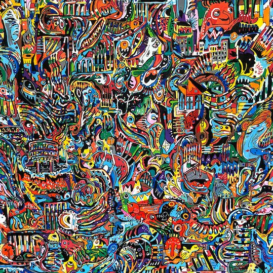 produzione pittorica, fatta di lisergici caleidoscopi di colori e forme che sembrano muoversi davanti agli spettatori. Anche nelle opere, come nelle canzoni, Andrea si esprime in diversi strati di lettura, fondendo citazioni letterarie, cinematografiche, artistiche che delineano la ricchezza della sua anima molteplice.