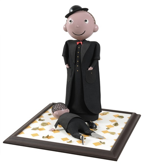 Ne risultano personaggi, apparentemente estranei allo spazio e al tempo; essi incarnano alla perfezione concetti universali avvalendosi, sia nei lavori bidimensionali che in quelli tridimensionali, di un linearismo estremamente accattivante. Lo stile è agile e sintetico, la sapiente scelta dei materiali, polistirolo e gomma piuma in primis, contribuiscono alla stereotipizzazione fumettistica dei suoi lavori.