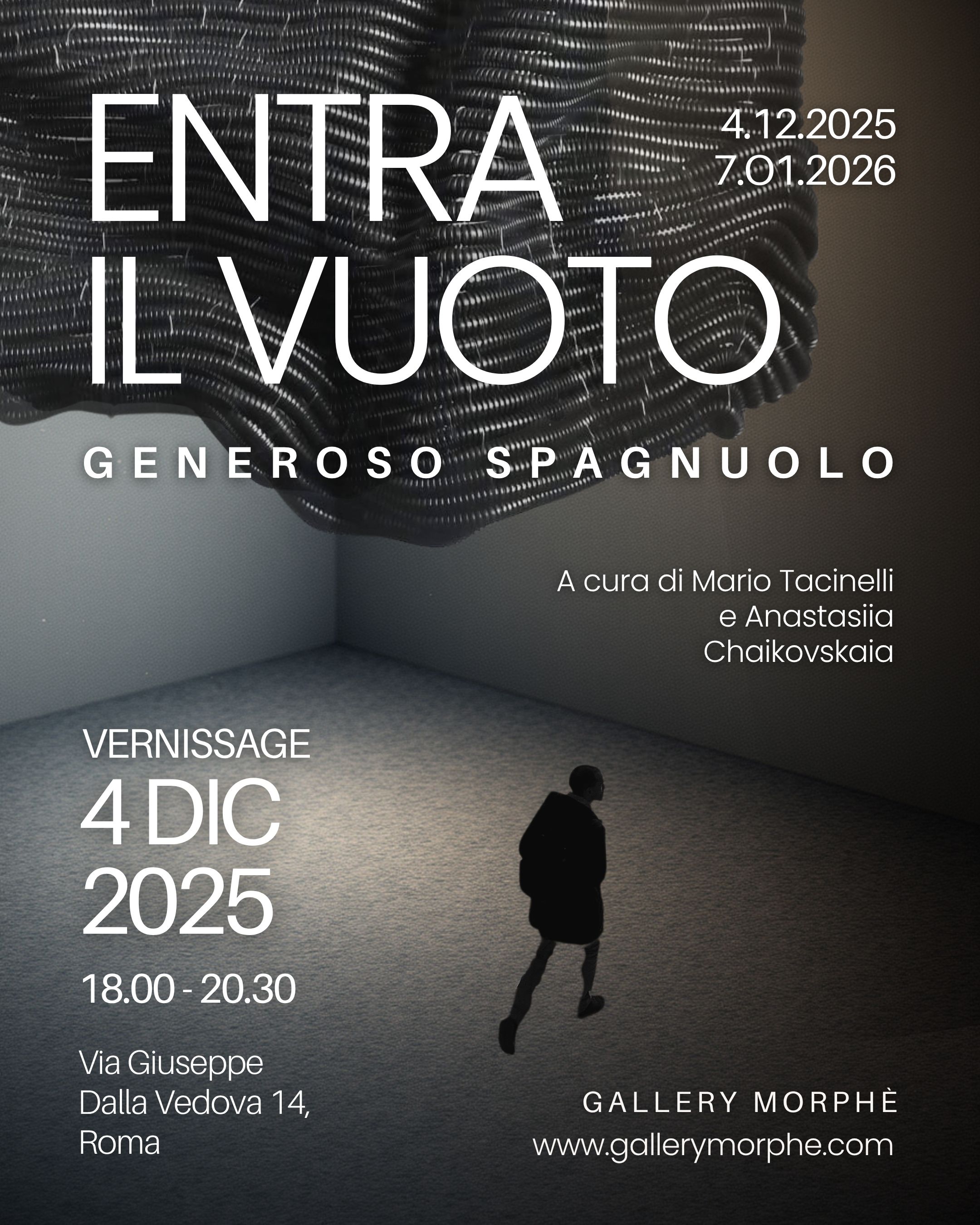 Siamo lieti di annunciare l’apertura di “ENTRA IL VUOTO”, mostra personale dell’artista Generoso Spagnuolo, a cura di Mario Tacinelli e Anastasia Chaikovskaia.