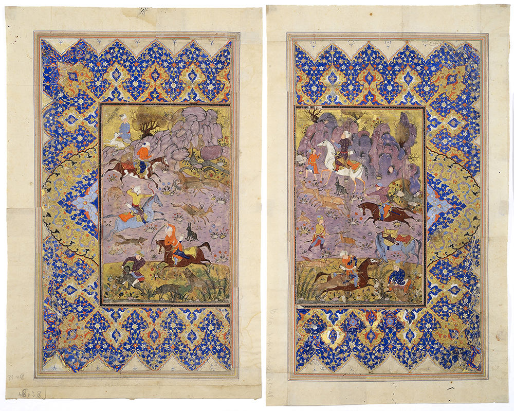 2: Persia, Shiraz, Epoca Safavide, 1560 ca., Scena di caccia in un paesaggio, Genova, Collezione privata