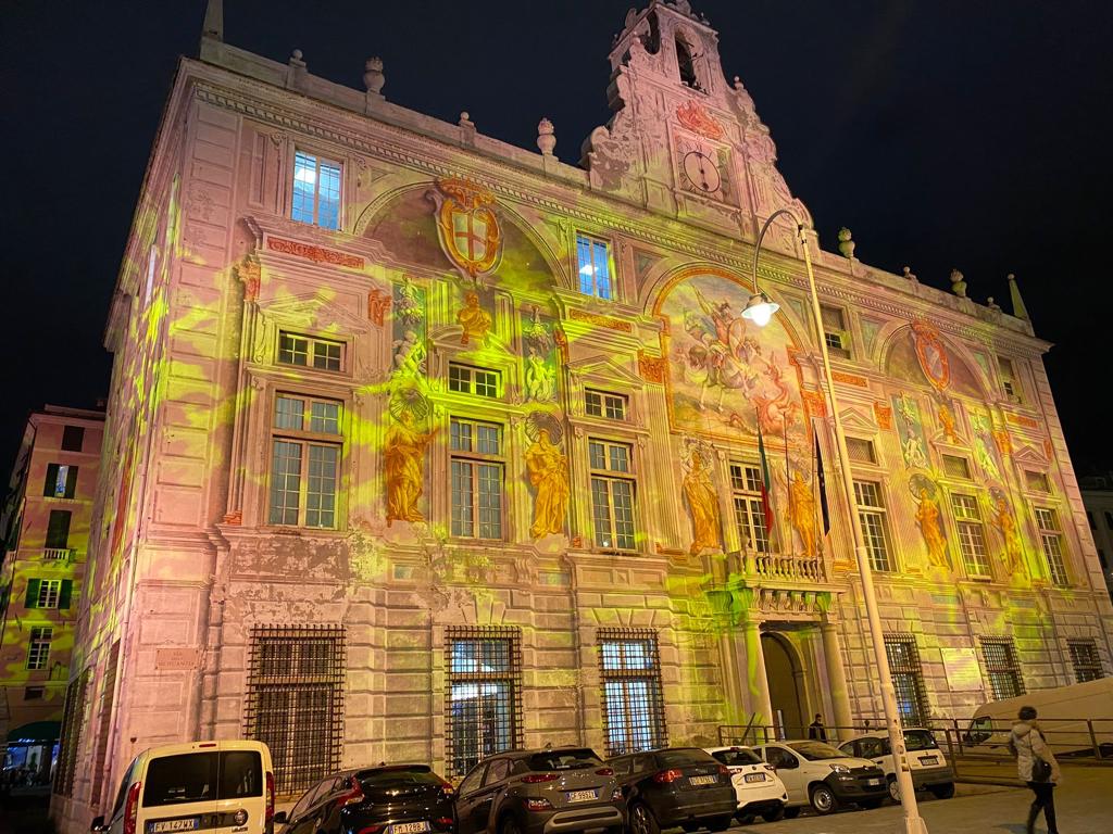 via Garibaldi – Il progetto tecnico - realizzato mediante l’installazione di due schermi Ledwall di imponenti dimensioni - crea uno spazio visivo per la pubblicazione di contenuti, accessibile a tutta la cittadinanza. Si tratta di un’installazione scenografica che si avvale di proiettori in grado di garantire la funzionalità anche in caso di condizioni metereologiche avverse, e che valorizzar lo splendido contesto storico e architetturale dove hanno sede le più antiche dimore genovesi.
