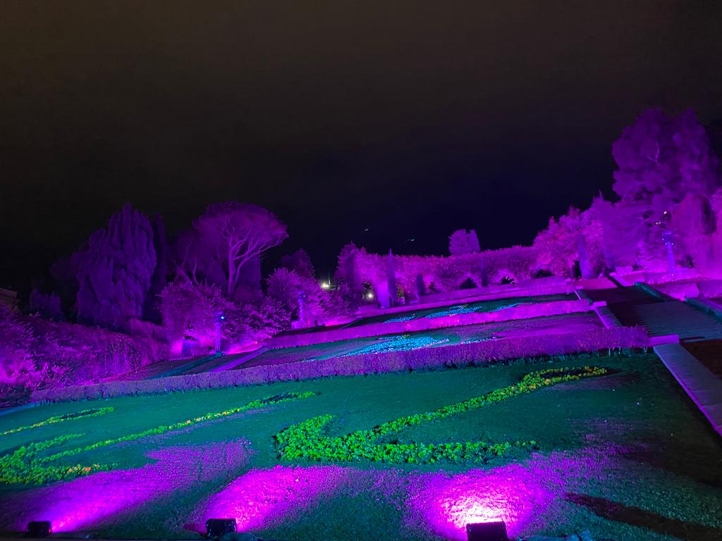 L’installazione, visibile anche da lunghe distanze, non impatta con l’inquinamento luminoso delle aree limitrofe. Le ambientazioni luminose cambieranno colorazione ogni 3 minuti per un totale di 20 scenari all’ora, che si riproporranno fino a tarda sera.