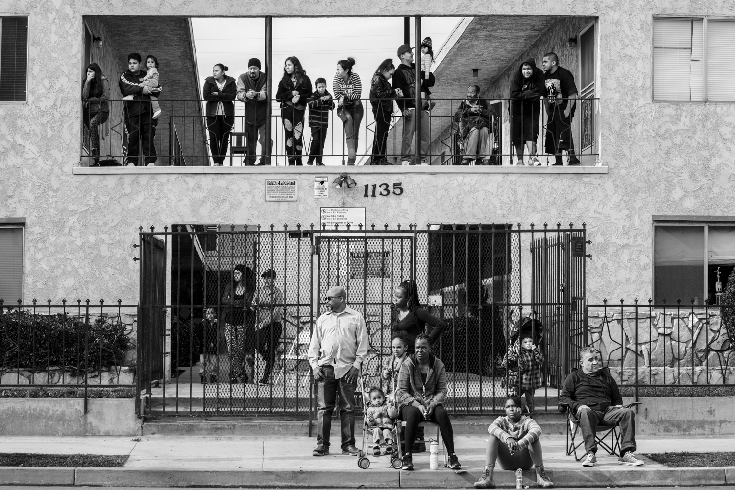 La prima parata che il fotografo ha documentato è stata quella dedicata a Martin Luther King a Long Beach, in California, in un quartiere che Georgiou ricordava diversamente: le strade un tempo vuote si erano animate di persone, famiglie, suoni, vita. La complessa community di quel quartiere era improvvisamente lì, davanti ai suoi occhi. Fu in quell’occasione che il fotografo ha avuto l’idea di Americans Parade e ha continuato il progetto visitando in totale ventisei parate, tra le quali quelle dedicate al Gay Pride, al Saint Patrick’s Day, al George Washington Day, all’Independence Day, al Black History Month, al Thanksgiving Day, e molte altre fino alla parata di Brockton, in Massachusetts, a fine novembre 2016, poco dopo l’elezione di Donald Trump a Presidente.