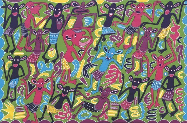 la tragedia, l’allegria, la fame, la lotta per la sopravvivenza, le tradizioni e i simboli atavici. Se i colori sono perennemente squillanti non è perché esprimano felicità, bensì perché colgono la pienezza dell’essere in tutte le sue manifestazioni. Tribale l’arte di Lilanga?