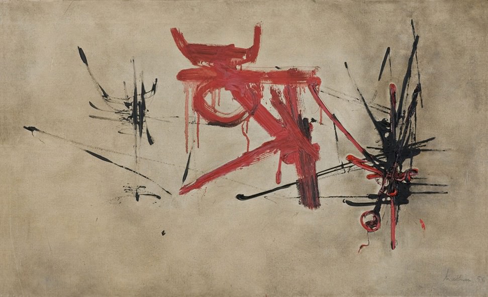 Per Mathieu la pittura è intesa come arte di puro impeto, libera da ogni costrizione formale, che predilige l’improvvisazione e l’immediatezza del segno, rifiutando riferimenti stabili e legami a forme definite.