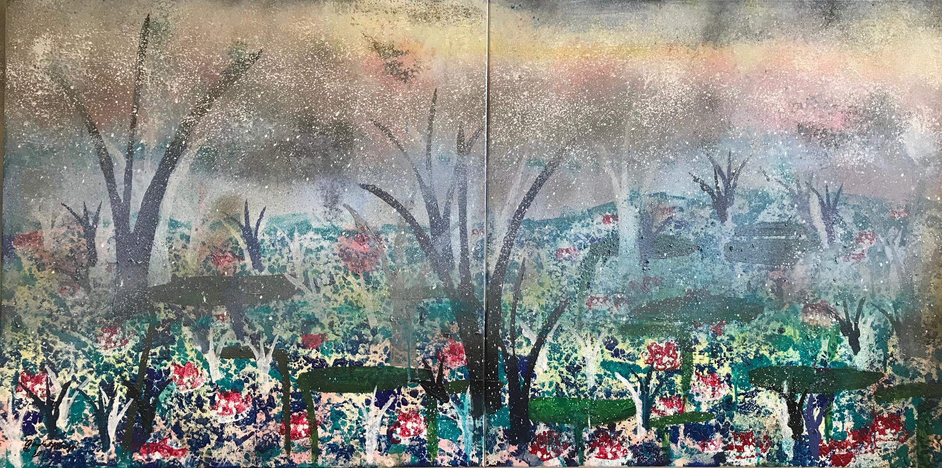 Dunque l’ A c q u a ; lo spunto rimane la poesia “Il lago” (1987), scritta dall’ artista per la silloge “Il muro del silenzio”. L’ artista va oltre. Non si limita ad approfondire e scandagliare il valore assoluto dell’ acqua, intesa come elemento naturale indispensabile per la vita e per il suo ciclo periodico (emblematico in tal senso il quadrittico sull’ avvicendarsi delle stagioni, rappresentato da un fermo immagine che scandisce lo scorrere del tempo unicamente con varianti cromatiche). Questi paesaggi – non paesaggi, luoghi astratti della mente, stimolano l’ osservatore e provocano emozioni, evocazioni di spazi e situazioni vissuti realmente ed immagazzinati indelebilmente nella memoria di ciascuno.