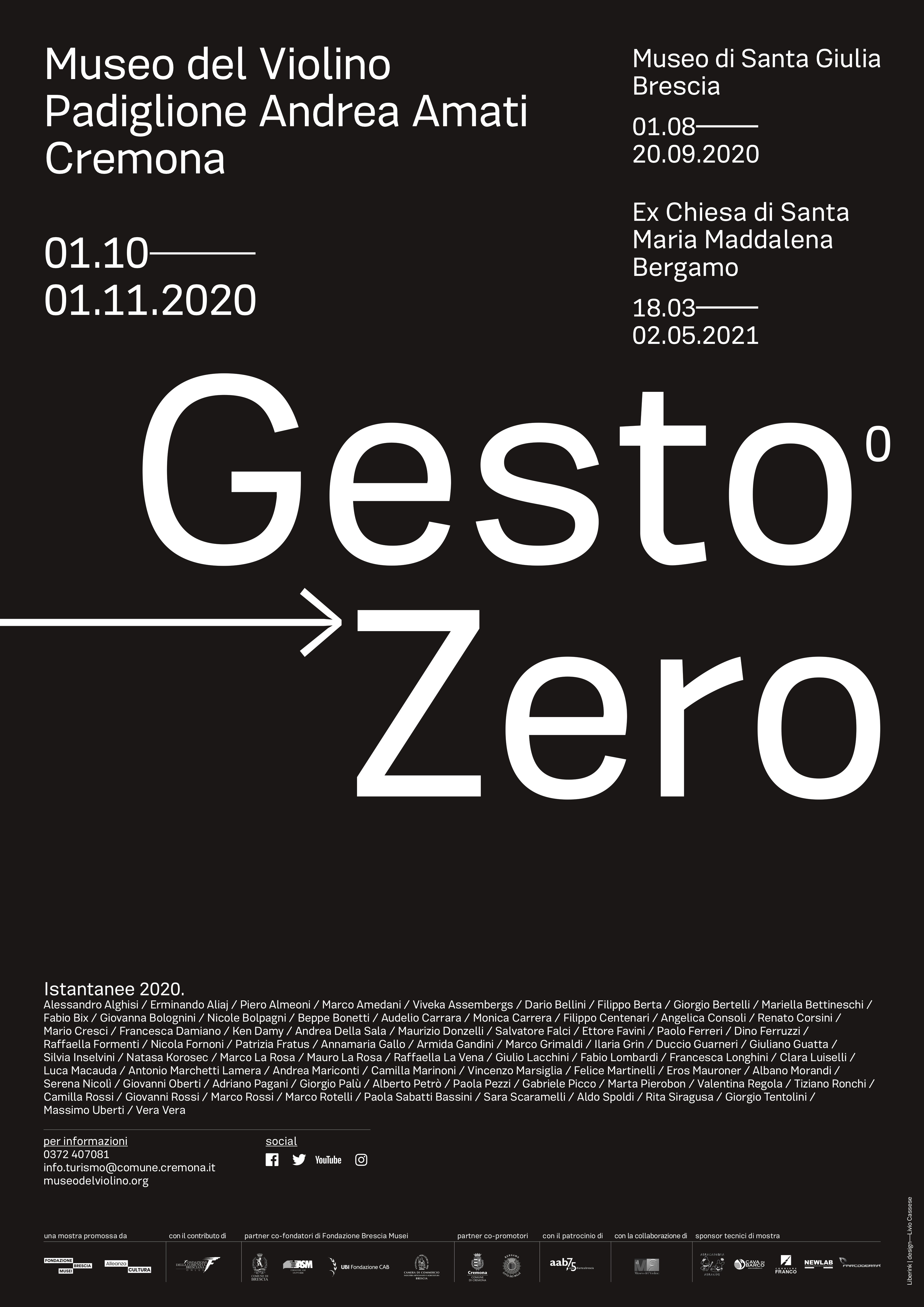 Orari: mercoledì, giovedì, venerdì 14.00-17.00; sabato e domenica 11.00-17.00; chiuso lunedì e martedì Ingresso libero alla mostra GestoZero. Istantanee 2020