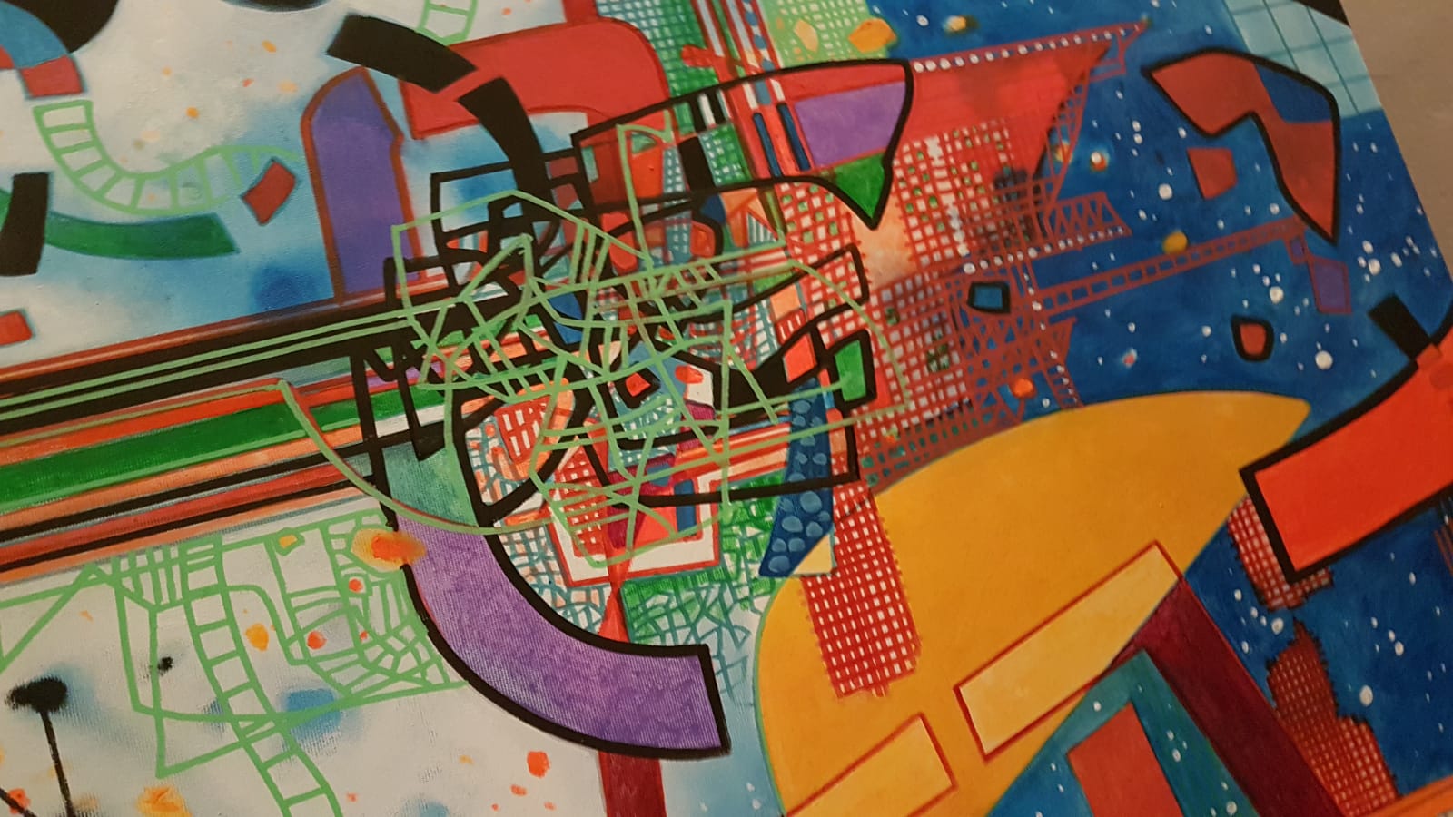 Ed è in questi spazi siderali che D’Auria si è immerso negli ultimi anni, portando la sua creatività verso un rinnovamento della pittura, portandolo ad abbandonare la materia (sua cifra stilistica), per concentrarsi sul gesto, solo in apparenza casuale, ma in realtà riconducibile a un richiamo matematico. Un viaggio metaforico, in grado di segnare un nuovo passo e un nuovo ritmo nella carriera dell’artista e che invita i visitatori a scoprire in prima persona in quale “dimensione altra” portano i grovigli di cavi elettronici e tralicci che si stagliano su cieli stellati, “macchine cosmogoniche che aspettano e in silenzio continuano a testimoniare la grandezza e la stupidità di una umanità che non appare perché forse autodistrutta”.