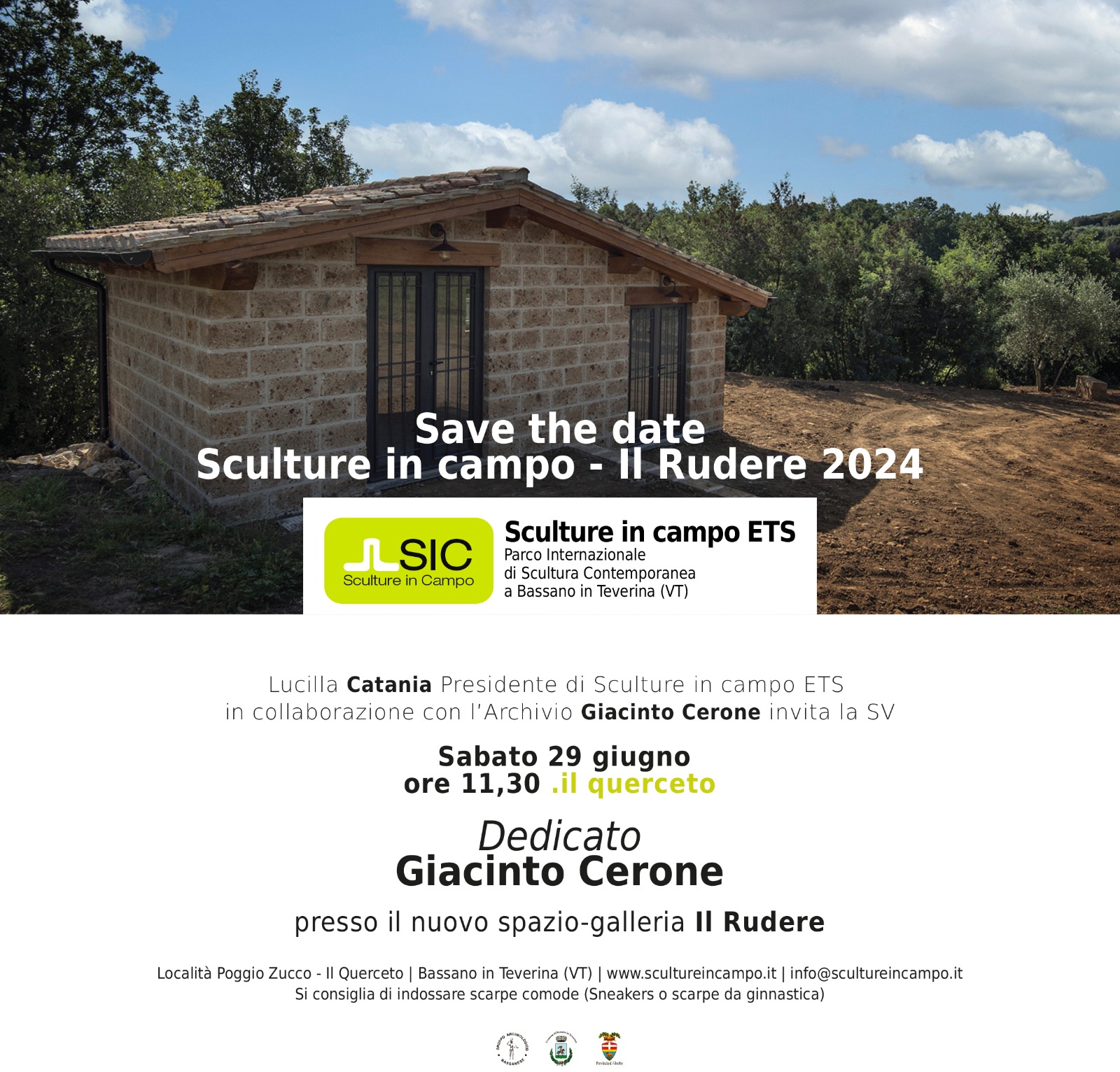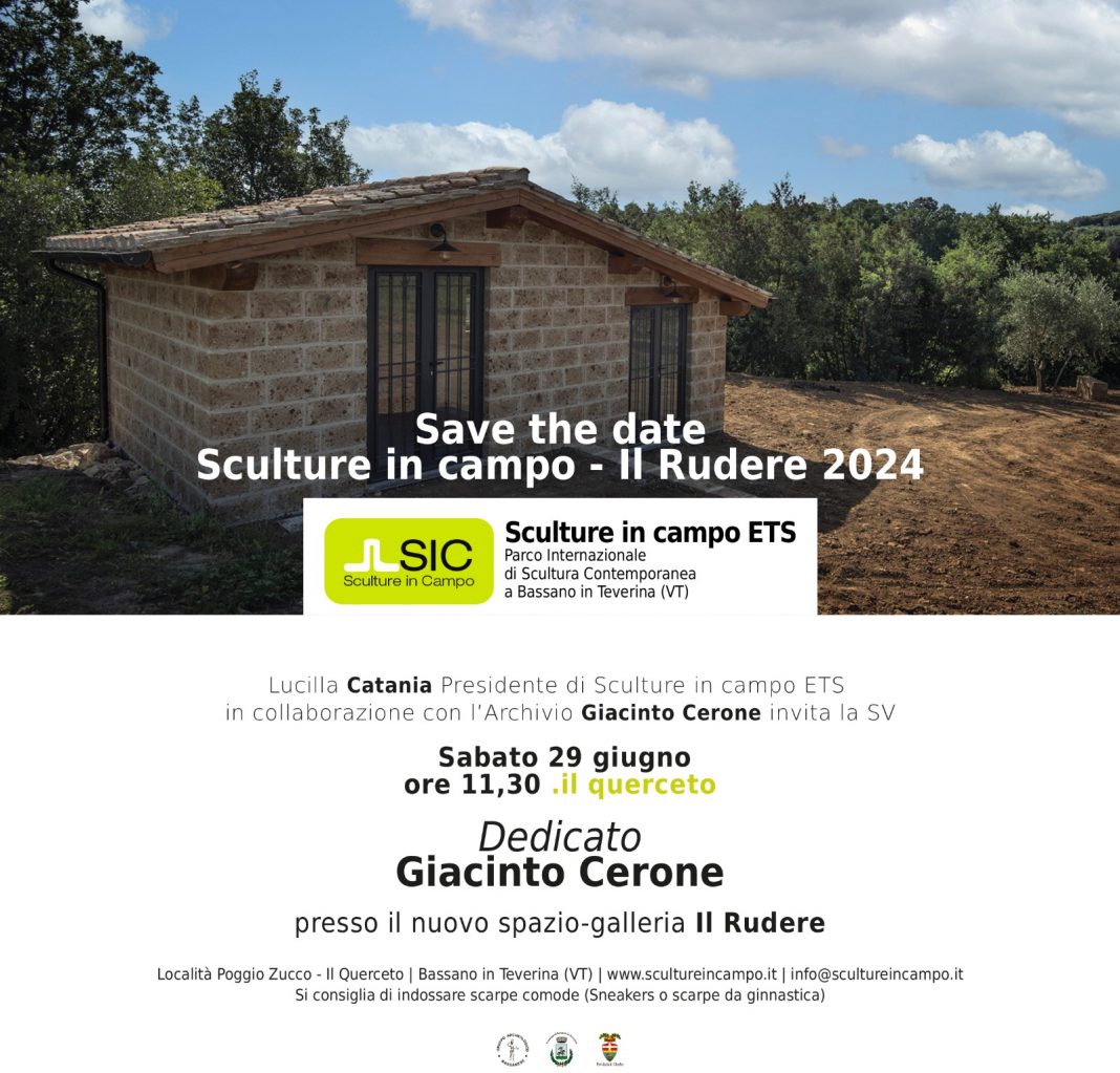 SABATO 29 GIUGNO 2024, SCULTURE IN CAMPO ETS AGGIUNGERA’ UN NUOVO CAPITOLO AL PROPRIO PERCORSO CON LA MOSTRA OMAGGIO ALLO SCULTORE GIACINTO CERONE, ATTRAVERSO UNA SELEZIONE DI DUE OPERE IN GESSO OSPITATE NEL NUOVO SPAZIO AL CHIUSO DEL PARCO BATTEZZATO “IL RUDERE”, PRESSO IL SITO DE “IL QUERCETO”