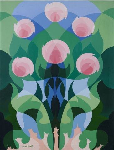 Tra il 1924 e il 1928 Balla realizza un ciclo di opere da gusto deco – i Balfiori – di formato e impostazioni analoghi. Cinque di queste tele dalle grandi misure (cm 100 x 70) vengono uniti da un listello di legno e esposte nella mostra romana degli Amatori e Cultori del 1928 quasi a formare un polittico: dalla foto della parete della sala VII si riconoscono le zinnie, gli astri, le dalie viola, le petunie e i ranuncoli. Il Balfiori qui esposto rappresenta le rose. Conservato gelosamente dalle figlie in Casa Balla – viene esposto solo nel 1980 alla Galleria San Marco, con questa prefazione: “GIACOMO BALLA: l’Artista che amava rendere in pittura (e ne era capace) la sostanza delle cose, che, come scrisse di Lui il suo allievo Depero fissò sulla tela il passo dell’uomo e la grafia metrica delle zampe di un cane in corsa, analizzò il volo delle rondini e l’aria scossa ritmicamente delle ali. Questo, dopo aver dipinto le materie ruvide, pelose, lucenti e le figure ferme, parlanti, con abilità di grande pittore nato. L’Artista, che amava soprattutto i colori nella luce, non poteva restare indifferente di fronte alla inimitabile sostanza e alla vibrazione coloristica che emana dallo splendore del fiore”.