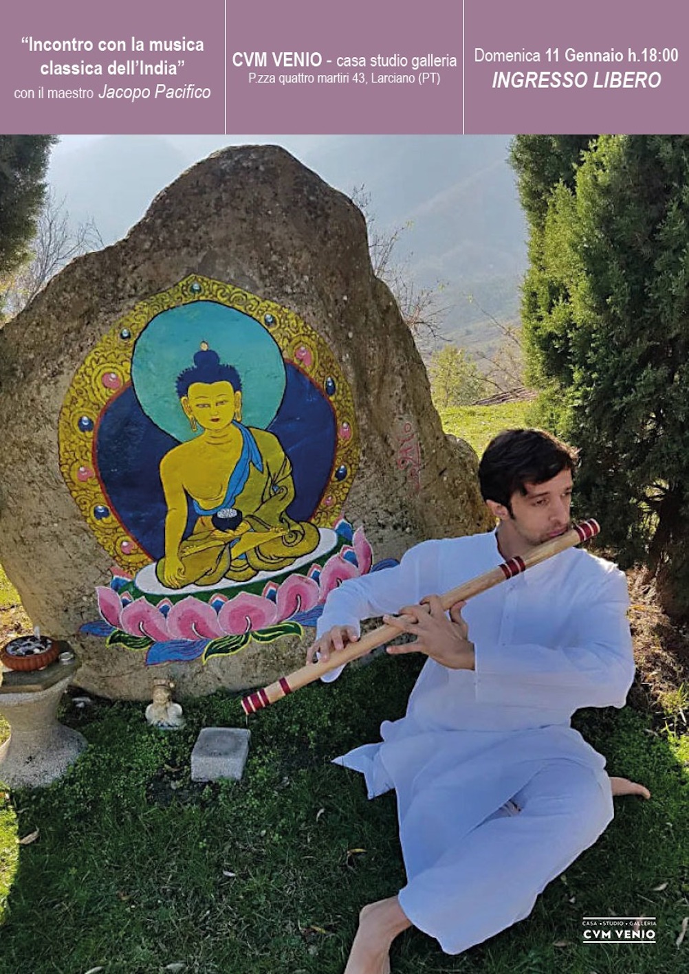 Finissage della mostra “NEL CORSO DEL TEMPO” dell’artista Giacomo Bonciolini e performance musicale dedicata alla musica indiana del maestro Jacopo Pacifico, presso “CVM VENIO – Casa Studio Galleria” di Larciano (PT).