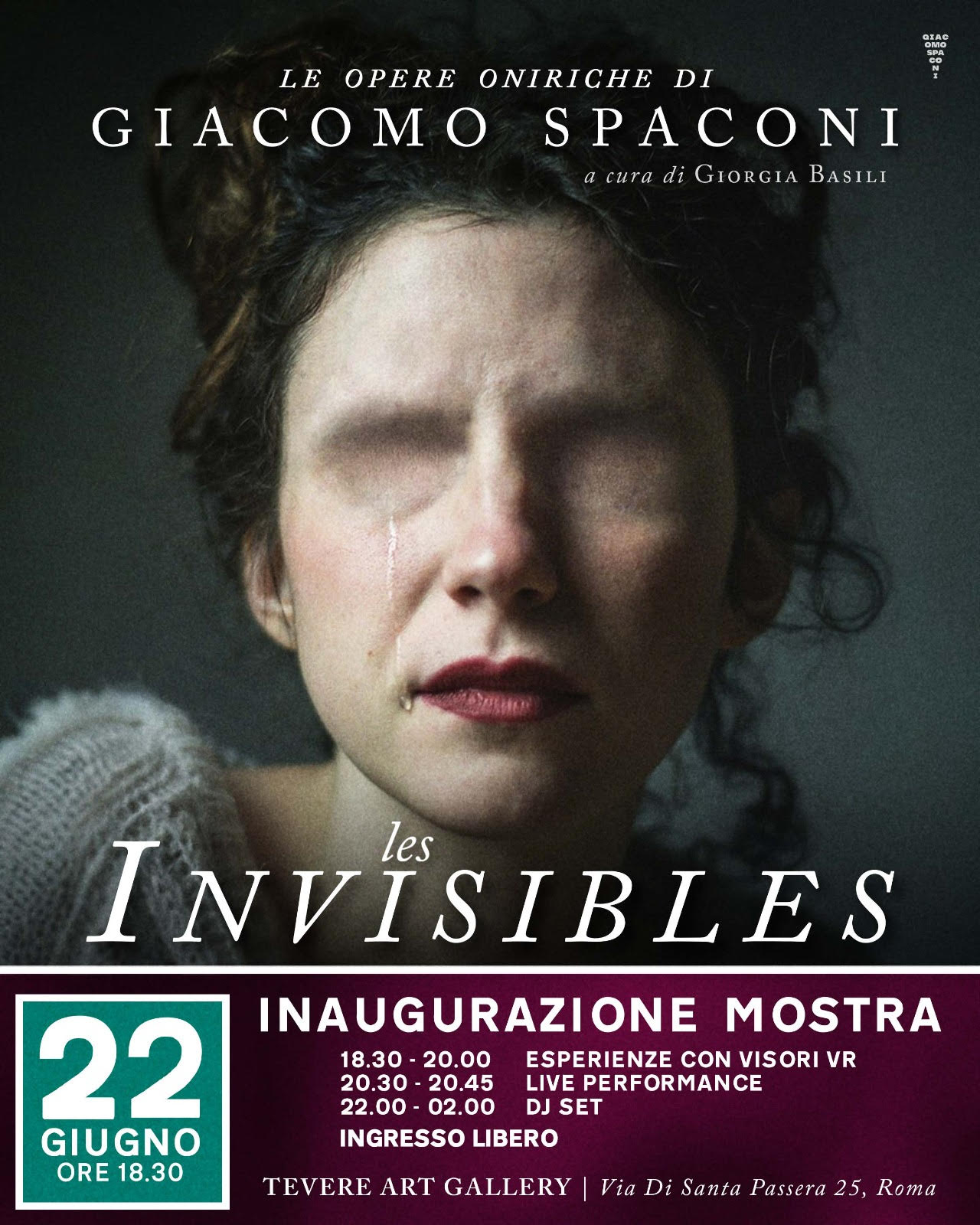 Giacomo Spaconi è regista e visual artist. Nato a Roma nel 1989, si laurea in Farmacia ma decide di dedicarsi al mondo dell'audiovisivo, approfondendo le sue skill di 3D Animation e VFX alla New York Film Academy di Manhattan. Noto al pubblico per essere il regista del duo comico Le Coliche, de Le Gioconde con Michela Giraud e di molte webstar italiane, il focus del suo lavoro è fondere la arti tradizionali con quelle più innovative, così da esplorare a fondo i limiti e le nuove possibilità dell'arte visiva, impiegando anche l'intelligenza artificiale e le nuove tecnologie come "creatività aumentata”. Espone nel 2015 la serie “Il Secondo Pianeta” al MACRO di Testaccio, e nel 2021 presenta il primo studio de "Les Invisibles" negli spazi di Largo Venue.