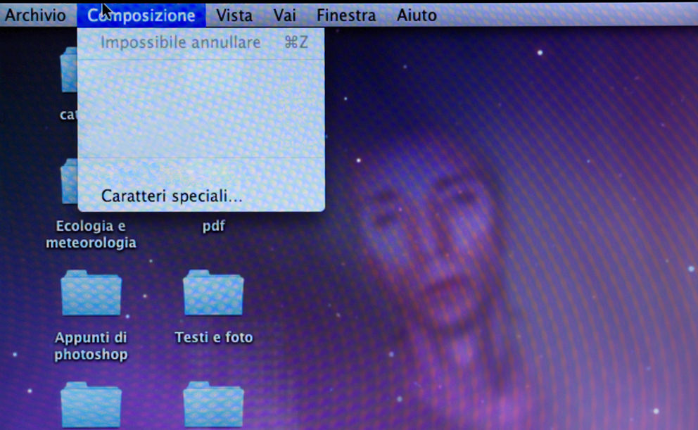 Caratteri speciali…, la recente serie che dà il titolo alla personale, nasce un po’ per gioco, un po’ per caso dall’esplorazione delle possibilità dei comandi della tastiera del computer. Schermo e scrivania dell’imprescindibile strumento di lavoro producono così effetti di eco, sfocature e riflessi. Il desktop diventa per qualche istante una finestra, attraverso la quale pare di intravedere forme evanescenti e indistinte, in qualche misura proiezioni di un mondo interiore.