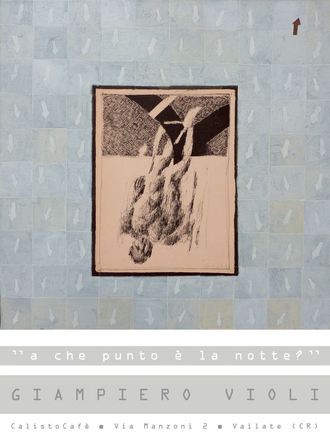 Allo stesso modo il germe di un “Adamo interiore” contemporaneo viene captato nelle tele-istantanee di Giampiero Violi, proprio mentre lascia il “paradiso”, nell’orizzonte del sopra-suolo e, lanciandosi convinto, sceglie di abitare nel grembo metaforico di sé stesso, ottimo terreno dei processi germinativi.