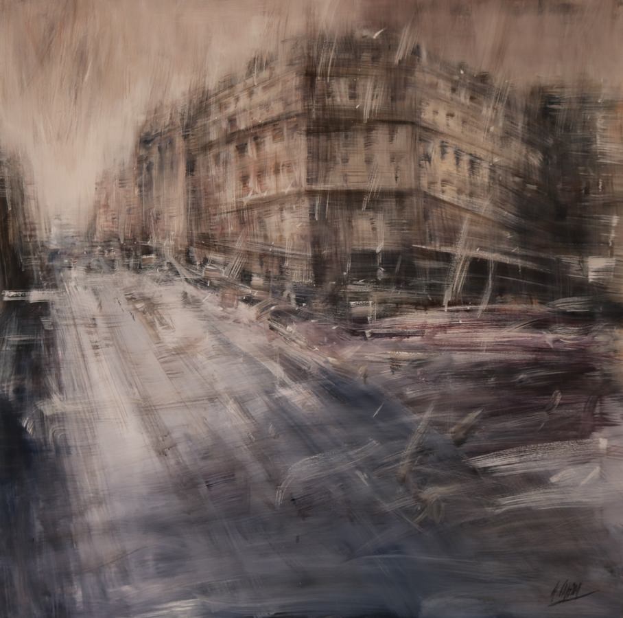 Il terzo dei tre non-luoghi è rappresentato dagli spaccati urbani, la figura umana è sempre assente ma se ne ha la chiara percezione dell'azione, del movimento, della frenesia di una massa che lo abita.