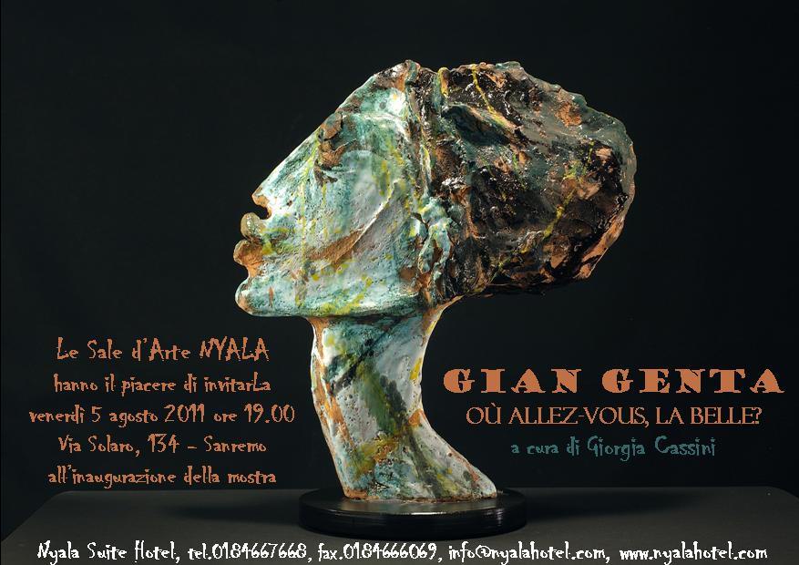 “Où allez-vous, la belle?” È domanda ironica che chiama l’entusiastica risposta “alla mostra di Gian Genta,” celebrativa di un’espressione di bellezza che di fatto è firma distintiva di tutta la sua ricca attività artistica. In quest’esposizione l’artista savonese porta l’esultanza creativa del suo temperamento unita al sottile ingegno indagatore nell’espressione dei volti delle giovani donne, nell’essenzialità dei volumi, nell’eleganza delle soluzioni decorative e nel taglio particolarissimo delle belle teste femminili così come in genere in tutta l’opera ceramica ove sempre è evidente un forte intento espressionistico che si traduce in forme raffinatamente arcaizzanti. Sculture straordinarie per maturità di visione, per intensità espressiva di certe semplificazioni plastiche dove l’affettuosa restituzione della verità del soggetto coincide con la preoccupazione della forma preziosamente stilizzata in un bivalente accordo frutto di una sensibilità umana che trasforma i molteplici soggetti iconografici in forme di ideale bellezza non scevre della loro concreta fisicità.