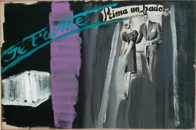 Le 20 carte in mostra alla SILBERNAGL UNDERGALLERY (tutte cm 40×50) vogliono essere un omaggio all’artista e al suo pubblico, che potrà ammirare questi particolari lavori. Come precisa lo stesso Montesano in un’intervista a “il Domani”, non si tratta di collage, perché, “non ho assemblato, aggiunto o sovrapposto, anzi ho tolto, ho sottratto, servendomi della pittura per cancellare l’inutile […] e evidenziare il necessario”. Così emergono le siluette di giovani donne abbigliate anni trenta e pettinate come nel dopoguerra, simili a manifesti pubblicitari, scene di vita piccoloborghese, ritratti dell’italietta fascista, assorbiti da sfondi monocromatici uniformi