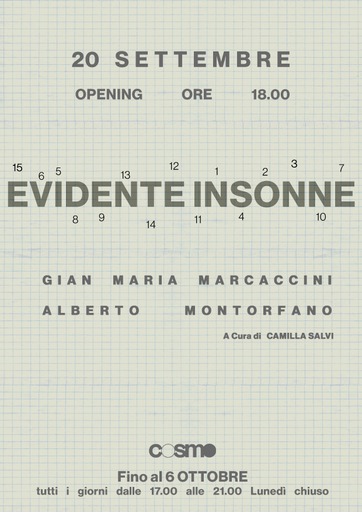 Dal 20 settembre al 6 ottobre Cosmo presenta Evidente Insonne, una mostra di Gian Maria