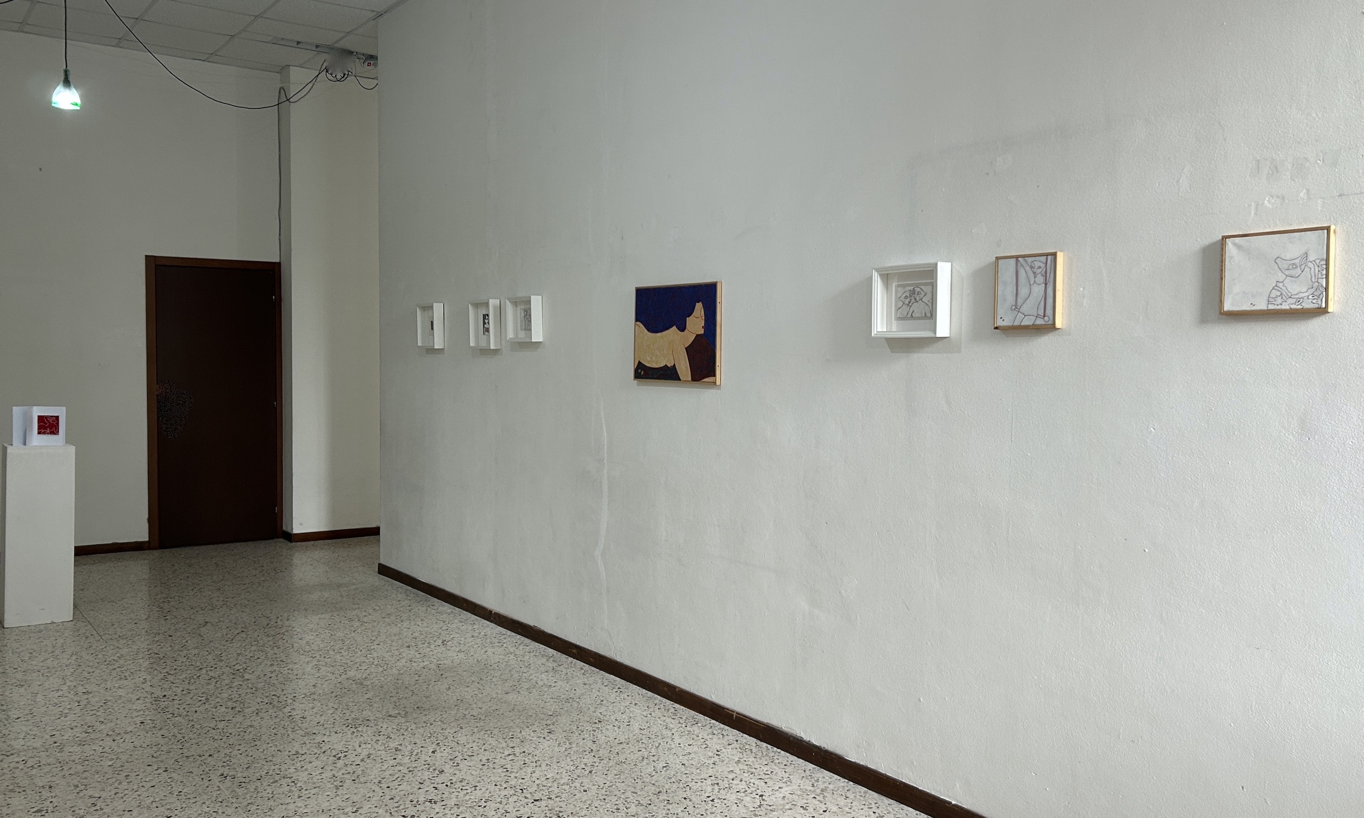 Se nell'ampio spazio di Palazzo Del Debbio ci si poteva aspettare il grande formato, ecco ancora una provocazione: sono solo piccole opere che giocano con il vuoto e che enfatizzano la loro presenza proprio perché fisicamente separate l'una dall'altra.
