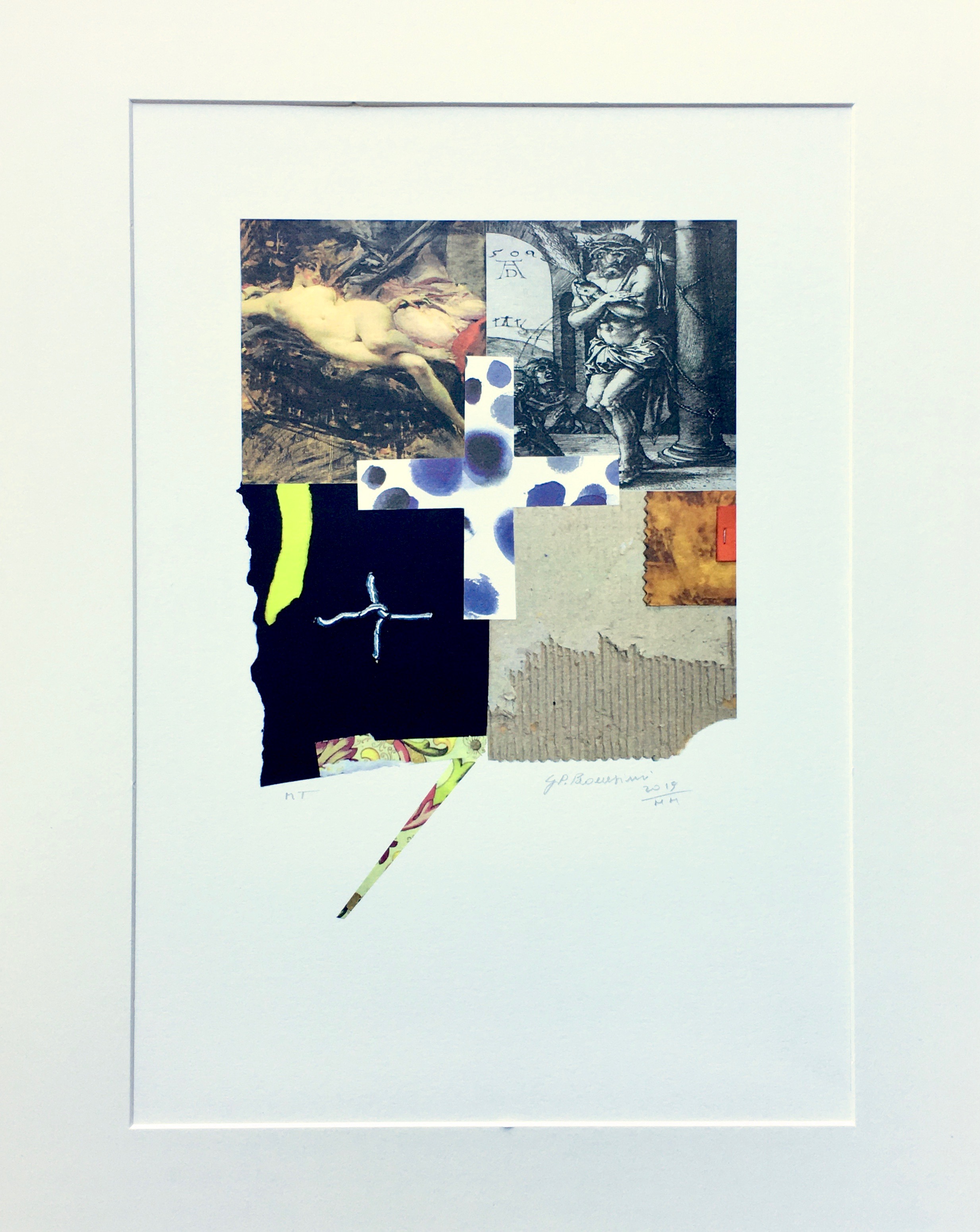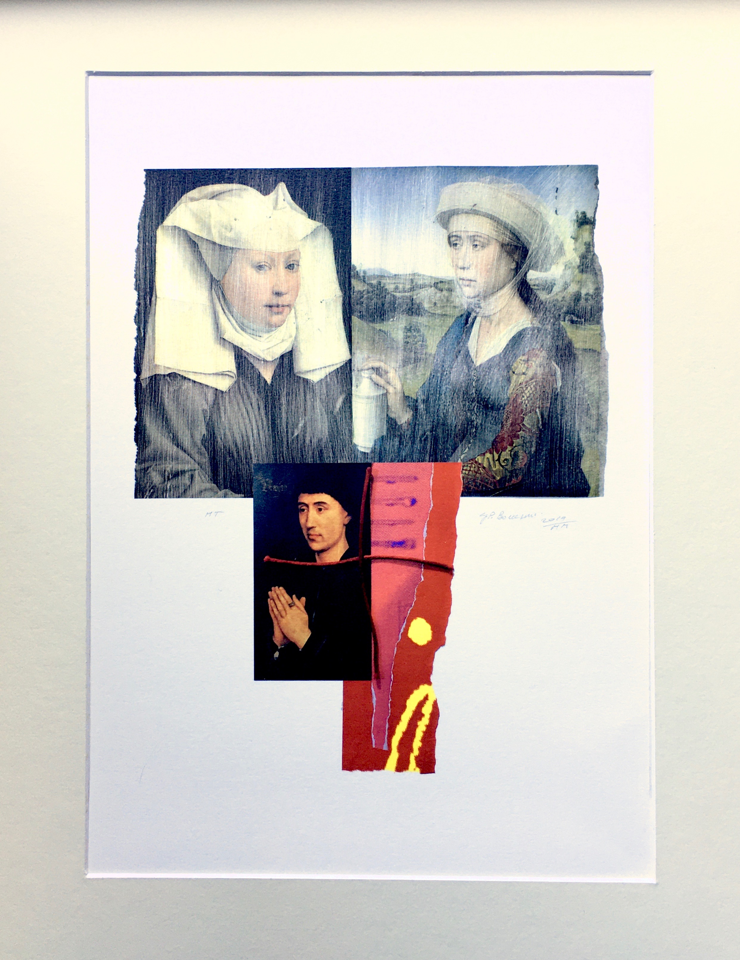 E’ possibile osservare in ciascuna opera, infatti, diversi interventi grafici e pittorici, con sovrapposizioni e stampa, fino a creare un insieme originale dove il “già visto” perde la sua efficacia.