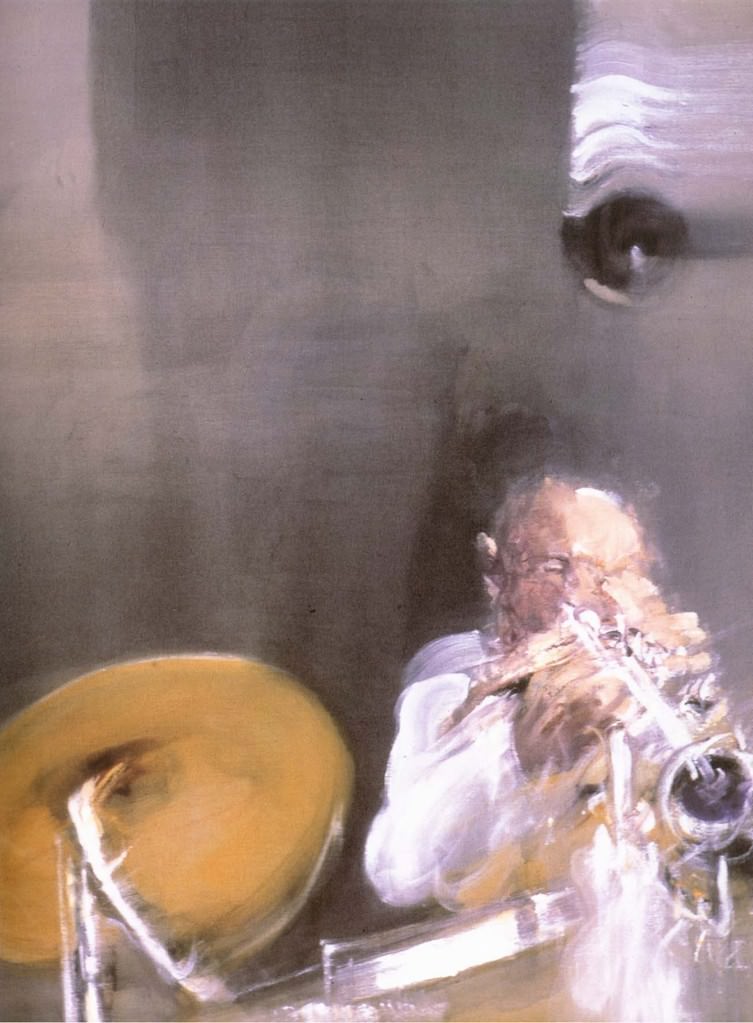 Si tratta di tele dedicate al mondo della musica jazz ed ai suoi maggiori rappresentanti, alcuni dei quali amici del pittore, composte con grande libertà espressiva e gestuale ed un forte senso ritmico e del movimento: i piatti della batteria divengono allora grandi cerchi di colore e le loro vibrazioni producono pennellate che muovono l'intero quadro, e così per le mani dei musicisti, per i numerosi saxofoni, per le figure ed i loro volti che paiono divenire un tutto unico con i loro strumenti. Dipingere la musica non è semplicemente dipingere i musicisti: è dare immagine ad un suono, è far percepire attraverso la vista ciò che si può soltanto udire, far partecipi anche gli occhi di quelle emozioni uditive, rendere concreta l'astratta vibrazione della musica, impedire al tempo di portarsela via.
