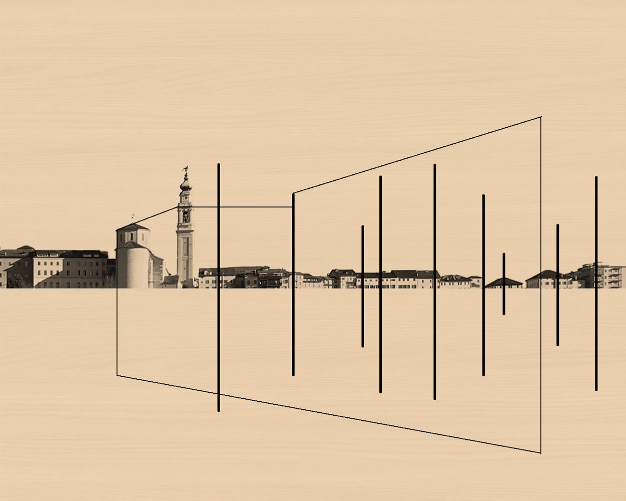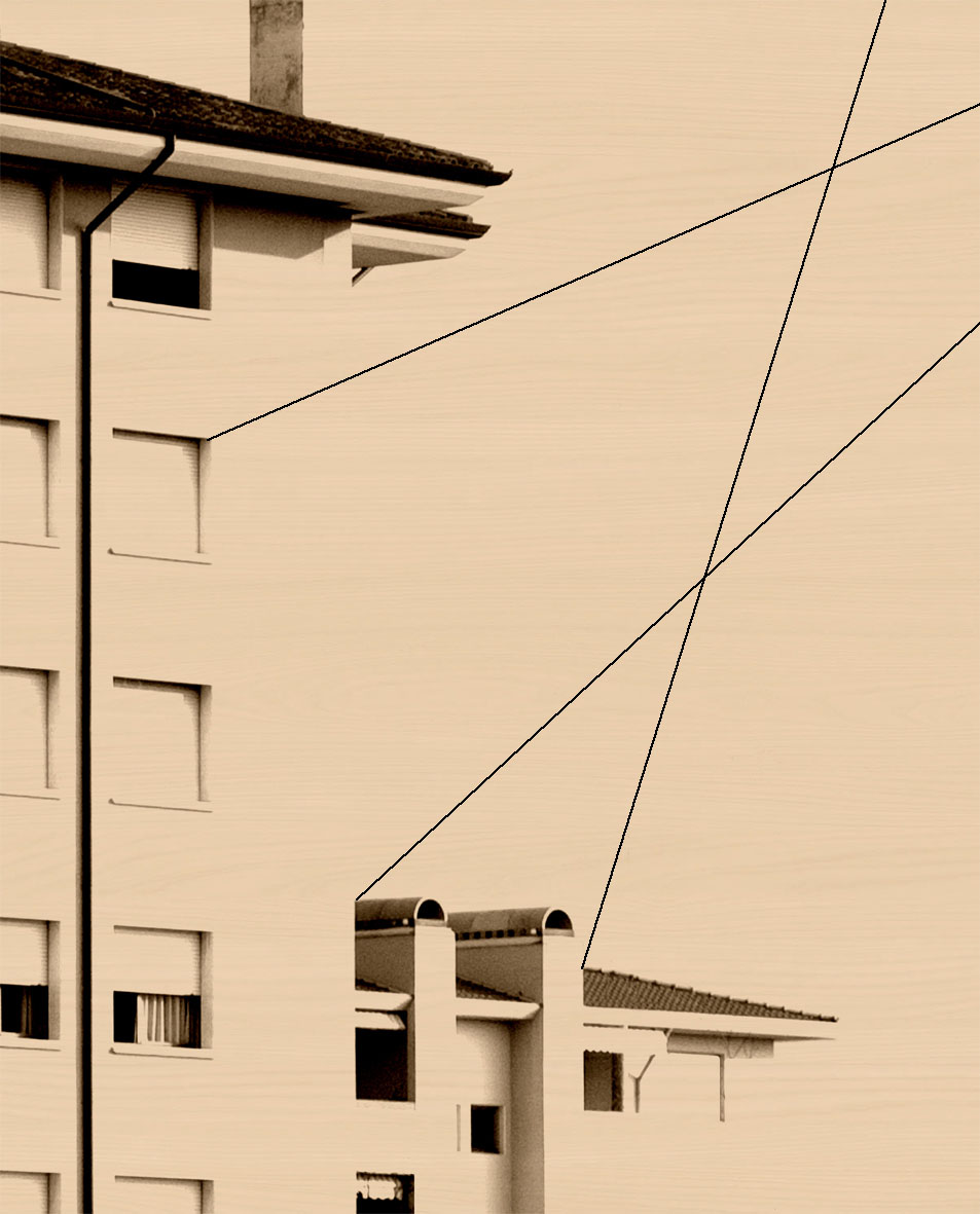The works from cycles with emblematic titles are exhibited: "Uncertain perspectives", "Disconnected landscape " and "Crossing the spot" from which emerges a method of approach closely linked to the concept of "journey". The artist's presentation is curated by the critic and Art historian Paola Bristot (Academy of Fine Arts of Venice); the title "Geomatics of the gaze" summarizes and gives a stringent and current reading key to the artist's methodology, "... to give dignity to apparently insignificant places , modern blocks of flats, corners of mountains, roofs of social housing, detached houses, hypermarkets and the conceptualization that maps them, piles them up, within rational schemes, the result of reasoning and transposition experiments and becomes a line that segments them and fixes them, beyond their apparent making. A geography of the gaze that is not completely immune to the digital contamination that inevitably has come under its skin, but which, even in the works where it is most pushed, bends to an artistic praxis that deliberately and forcibly models its shape”. In the exhibition project there are also three sculptures that concretely shift the level of perception of spatiality investigated by the artist onto the three-dimensional non-virtual plane.