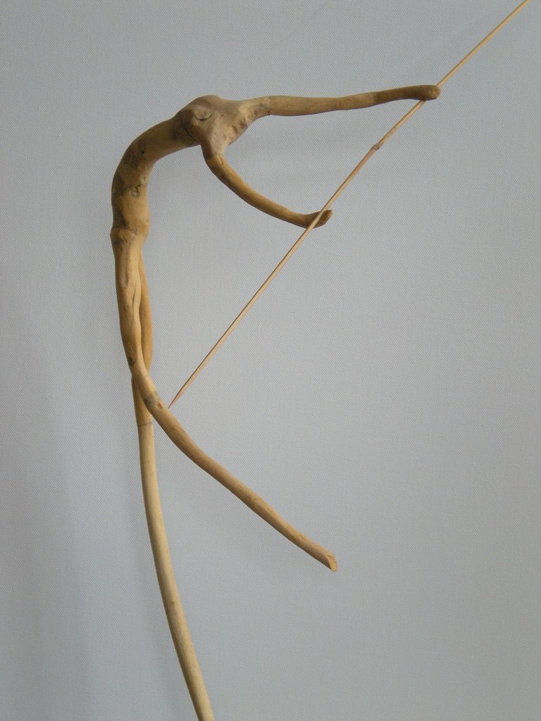 L’influsso della natura si avverte anche nelle sculture, realizzate con i legni trovati sulle rive del fiume e assemblati grazie all’uso di resine; sono angeli, ballerine e acrobati dalle forme allungate quasi sino al paradosso, figure che sembrano richiamare antiche divinità dai movimenti armoniosi e leggeri.