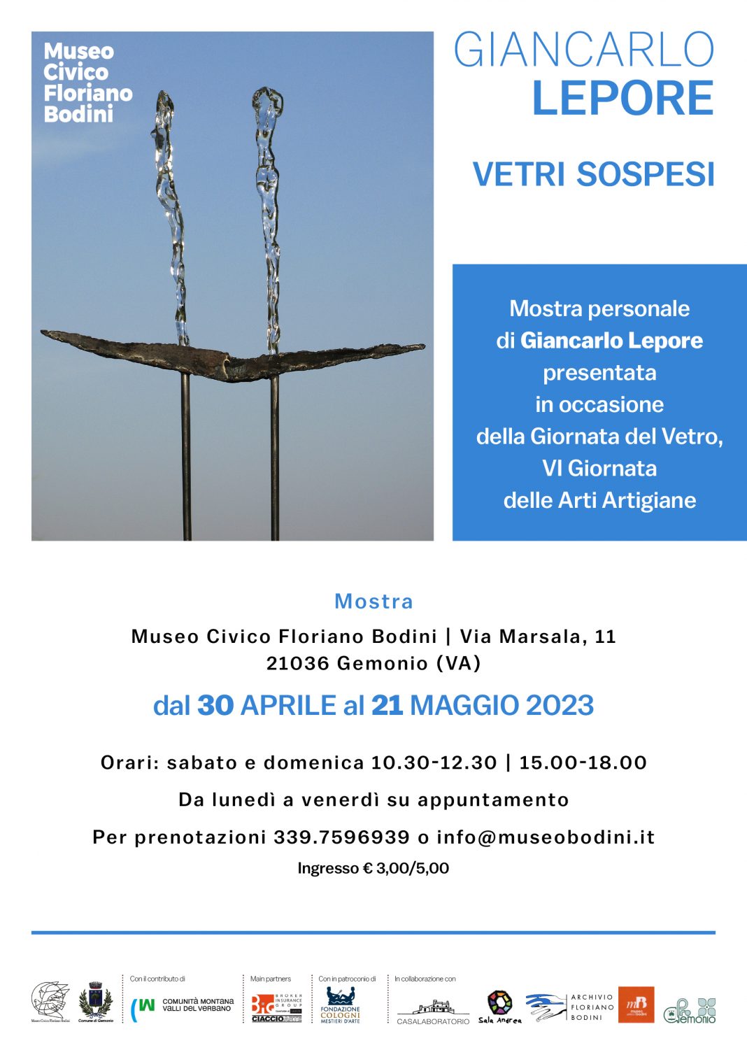 Durante la Giornata del vetro viene inaugurata la mostra “Giancarlo Lepore. Vetri sospesi”: “il corpo è il soggetto preferito: corpi in pelle modellata, marmo, bronzo, creta, ferro, carta e vetro. Vengono resi in volumi dinamici, piatti, allungati e deformati, ognuno di loro evoca una poesia differente. Lunghi steli che sembrano unire il cielo alla terra, nodosi come tronchi secchi nel bosco oppure leggeri e trasparenti come acqua che scorre. La voce della natura sempre presente”.