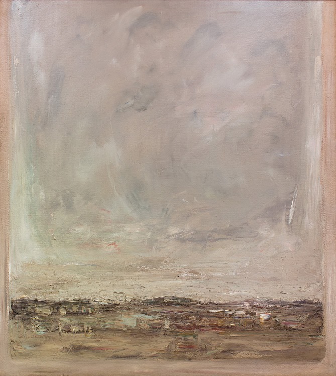 Si parte allora dagli esordi, dalla violenza deformante della guerra e dall’esplorazione di un mondo sommerso che, disceso nelle profondità della mente, riaffiora rifatto. Una luna sconsacrata illumina le cose, sulle scrivanie si depositano «gli strumenti umani» e le sedie conservano residui di chi se ne è già andato. I pavimenti sprofondano in altre storie, in paesaggi sognati tra corpuscoli di luce, briciole, polveri, descritte come presenze lampeggianti. E i panorami che si allargano improvvisi sulle pareti, come muffe e macchie enigmatiche, contengono fascinazioni fiabesche. I laboratori, le fabbriche, le officine non sono le tristi retoriche dell’abbandono, dell’archeologia, ma si riaccendono di colori. I lavori più recenti ci depistano, nascondendo dietro alla quiescenza il delirio che disorienta, il thriller.