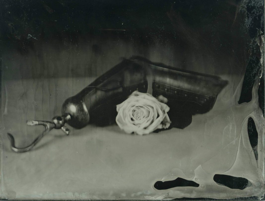 Un percorso a ritroso nel tempo, non soltanto nello studio e nella riappropriazione di un’antica tecnica fotografica, ma anche nella ricostruzione di un’estetica decadente che dà origine a vanitas, composte da oggetti rari, naturalia e teschi.