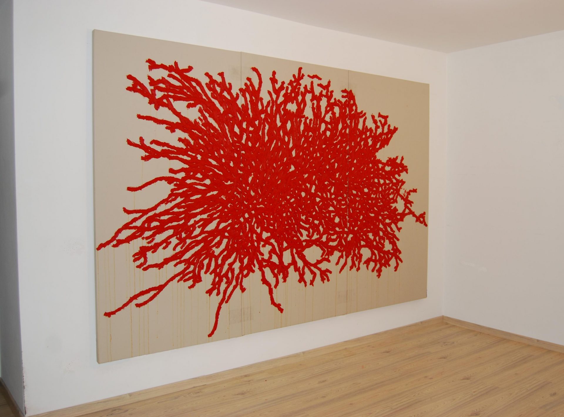 Negli spazi della Galleria Casagrande ci troviamo a vivere il secondo step di questo progetto. Uno spazio fisico in cui viene sviluppato un lavoro psicologico e riflessivo che innesca un procedimento di immersione totale nello spazio e nell’opera stessa. L’ambiente composto da diverse opere diventa un unicum dinamico ed energico che si districa fra differenti livelli di comunicazione e arte. La parete di fondo della galleria realizza un parallelo con il web e lo schermo stesso del computer, tappeti lavorati al centro del pavimento ci accompagnano nel percorso fisico ed interiore verso la completa immersione ambientale e mentale.