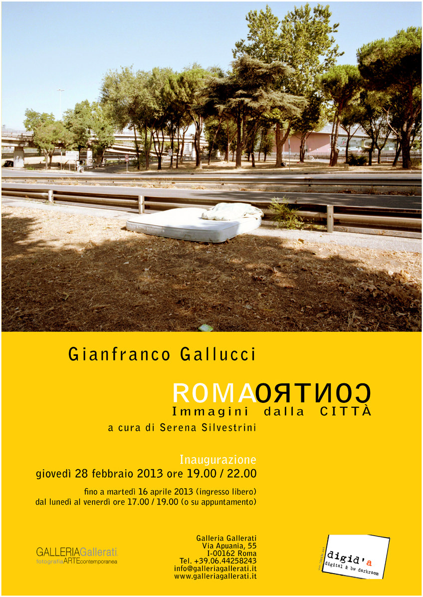 Si inaugura giovedì 28 febbraio 2013, alla Galleria Gallerati di Roma, RomaCONTRO – Immagini dalla Città, una mostra personale di Gianfranco Gallucci a cura di Serena Silvestrini.
