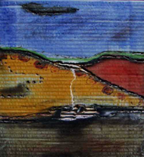 L'armonia dei colori, il rapporto tra questi e il materiale povero del fondo finiscono col perdere i riferimenti puramente tecnici per diventare elementi espressivi della materia che"dialoga col tempo attraverso le stratificazioni".