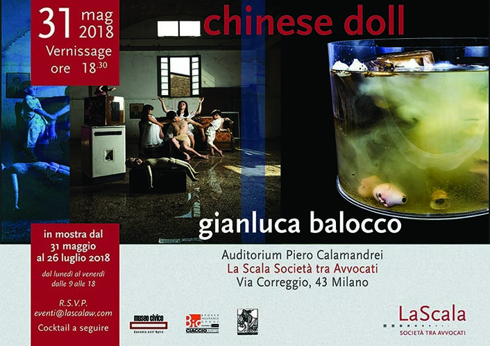 La Scala Società tra Avvocati e dalla sua Toogood Society – fondata nel 2013 per avviare un progetto di formazione culturale, nella convinzione che gli stimoli culturali arricchiscano gli individui, non solo da un punto di vista personale ma anche professionale ospitano la mostra di Gianluca Balocco dal titolo “Chinese Doll”, composta da 16 pannelli espositivi in cui le fotografie realizzano una sorta di collage.