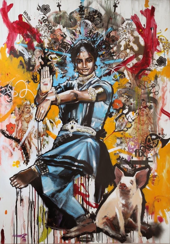 La mostra prende il titolo dal numero delle opere rappresentate, tredici opere di grande impatto coloristico e dai contenuti che indagano ed esprimono mondi onirici e spirituali, attraverso una pittura concreta e sfacciata, dal segno volutamente provocatorio.