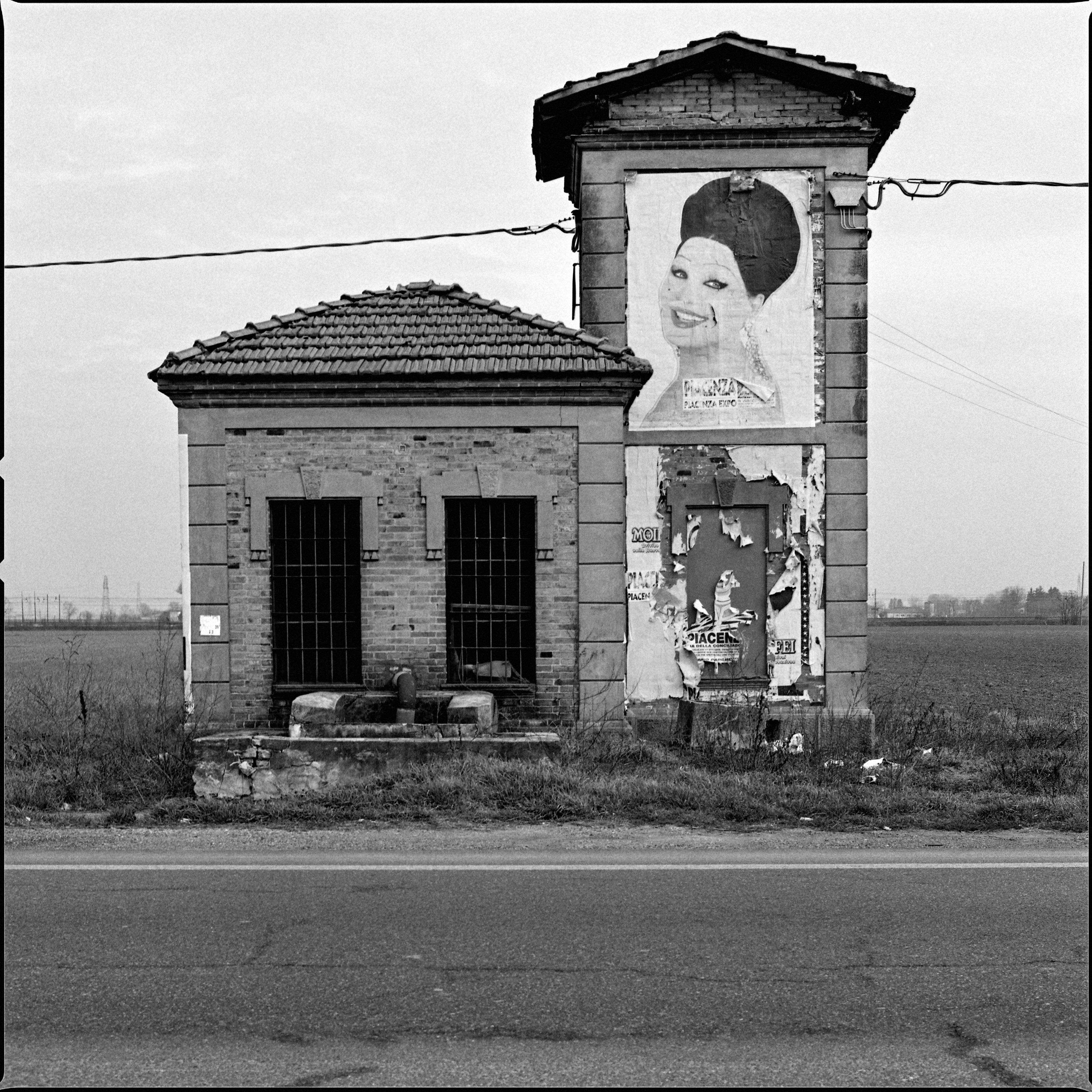 Queste fotografie in bianco e nero raccontano una piccola parte del paesaggio italiano, la Via Emilia. E’ un viaggio che mostra ciò che si incontra lungo la statale, un’Italia che vediamo tutti i giorni dai finestrini delle nostre auto e forse, proprio per questo, non notiamo più.