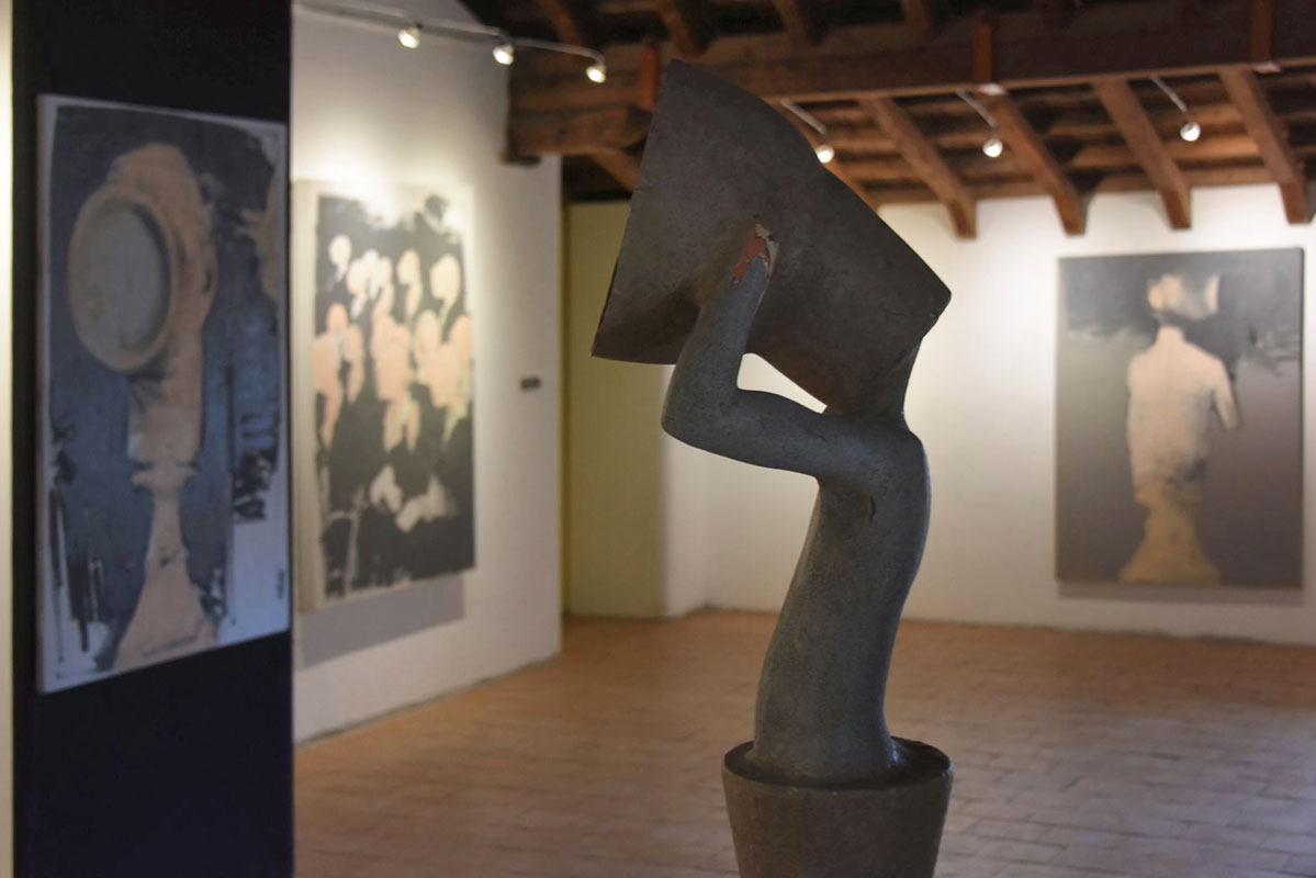 Il tema della mostra conTEMPOraneamente indaga il rapporto tra l’uomo il tempo e il territorio, attraverso una installazione formata da 6 grandi sculture, dipinti su tavola, su tela ed altre sculture.