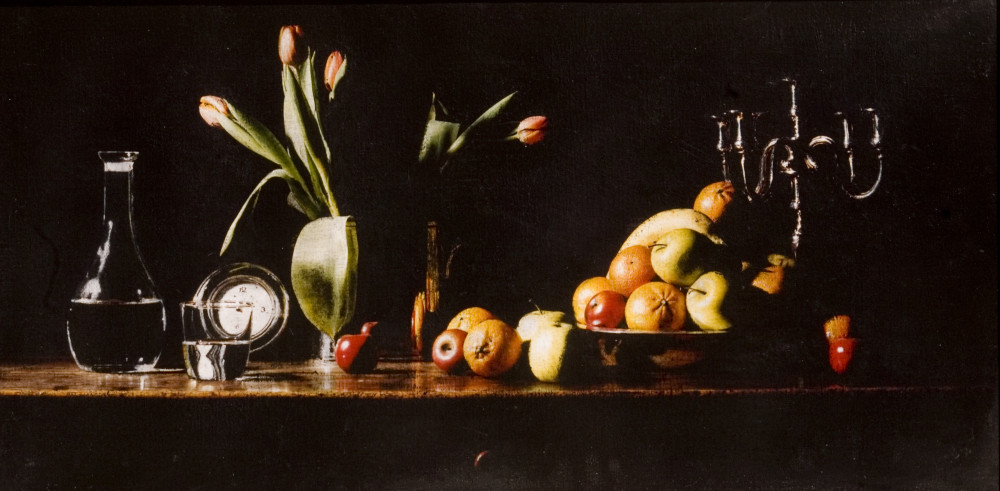 L'ultima sezione è dedicata alle nature morte, che per il loro violento gioco chiaroscurale ci riportano alla lezione caravaggesca, ed esaltano l'eleganza e la sapienza compositiva di Chiodi.