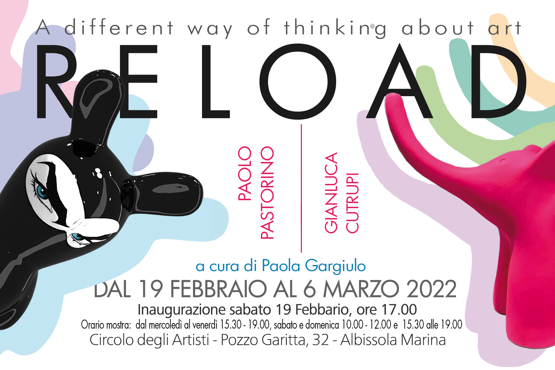 “Reload” è a cura di Paola Gargiulo ed inaugurerà sabato 19 febbraio 2022 alle ore 17 negli spazi del Circolo degli Artisti (Pozzo Garitta, 32, Albissola Marina).