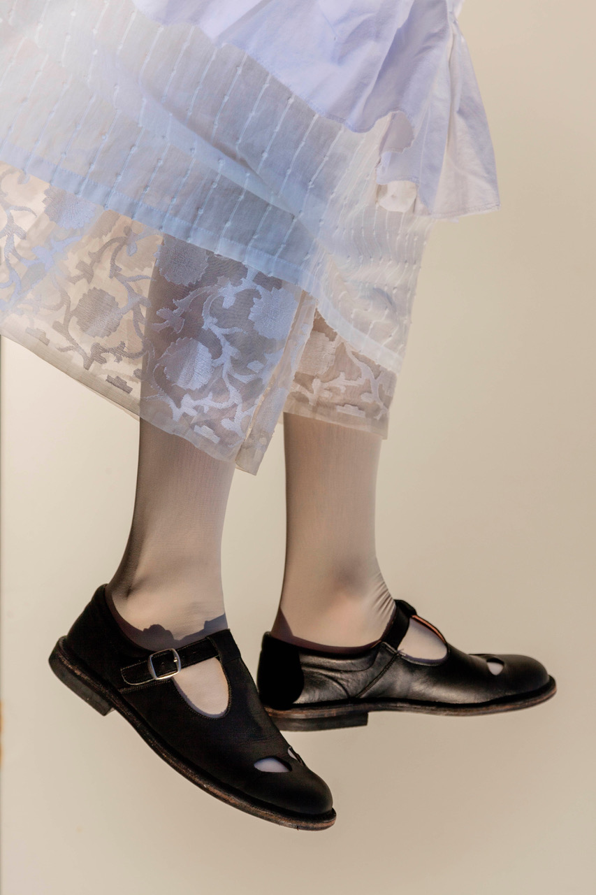 LESSICO FAMILIARE è un progetto di abbigliamento domestico nato nel 2020, per noia e per allegria (Natalia Ginz- burg “Ti ho sposato per allegria”, 1964). Progettato e assemblato rigorosamente in casa, viene fotografato prima sui dirimpettai e poi su Benedetta Barzini. Lascia brevemente le mura domestiche per esporre i propri indumenti presso Fondazione Sozzani nel 2021. Appare su Vogue Italia, Il Corriere della Sera, Virtus e Collectible DRY Magazine. Centrale è il tentativo di tradurre il proprio lessico in capi smontati e riassemblati, spesso ingigantiti. Conservare la memoria arricciando le tende ingiallite e rammendando i canovacci umidi, stesi ad asciugare sui termosifoni. Non è no season, ma one-season, un unico e continuo racconto in cui i gli indumenti vanno e vengono senza fretta. L’attuale formazione di Lessico familiare comprende Riccardo Scaburri docente e desginer, Alberto Petillo, confezionista e tatuatore, Alice Curti, designer e magliaia.