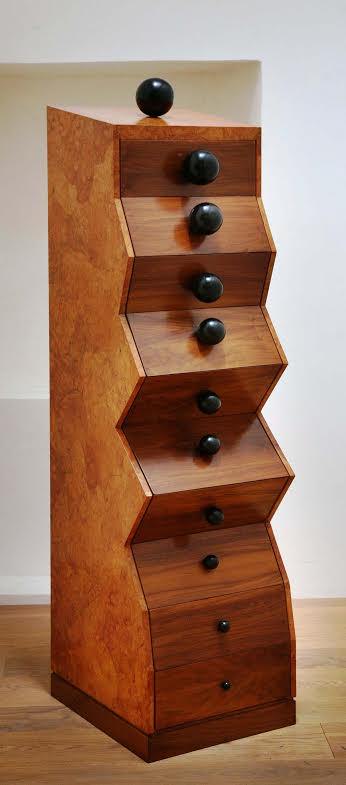 legno di radica di mirto, cassetti in noce, pomelli in faggio tornito tinto ebano (L43 P50 H158cm)