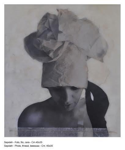 riso, filo da ricamo, cera, ovatta, immagini fotografiche. La produzione dell'artista è frutto di