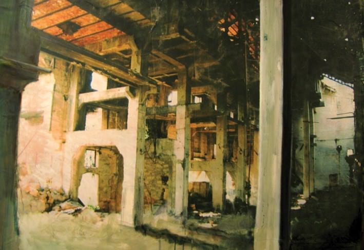 Causarano fissa con dedizione quasi documentale i luoghi, i simboli, gli scenari tipici della “tradizione” industriale