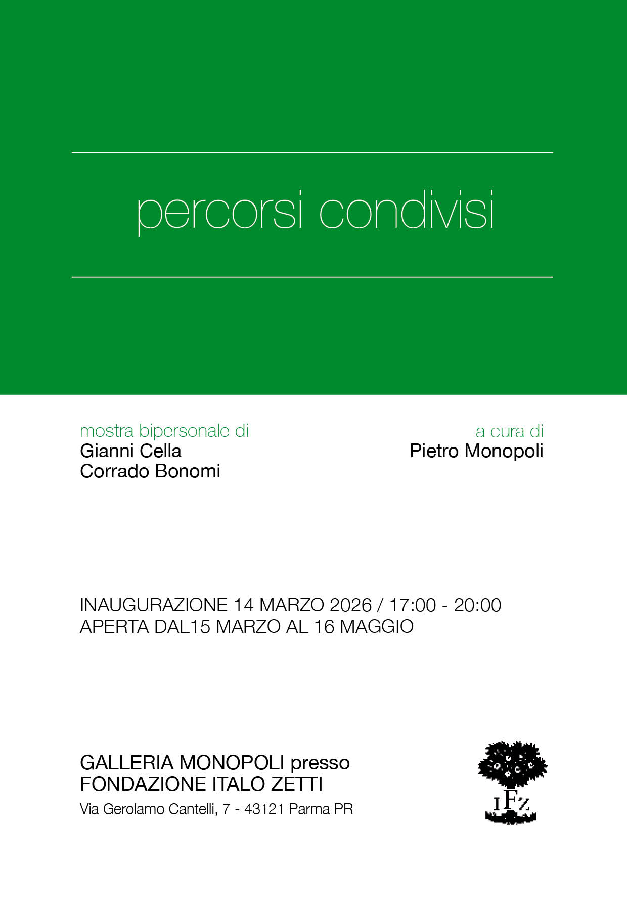 Percorsi condivisi è la nuova mostra bipersonale di Gianni Cella e Corrado Bonomi, curata da Pietro Monopoli e ospitata presso la Fondazione Italo Zetti di Parma.
