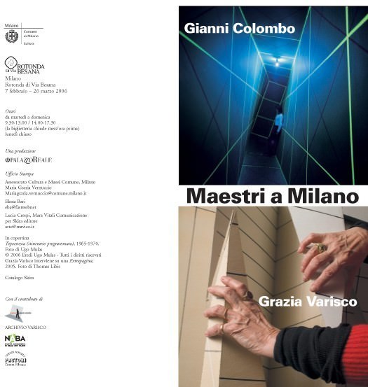 Promosse dall’Assessorato alla Cultura del Comune di Milano e ospitate negli spazi della Rotonda di via Besana, si inaugurano il 7 febbraio 2006 le mostre dedicate a Gianni Colombo e Grazia Varisco, curate rispettivamente da Marco Scotini e da Jacqueline Ceresoli. Le due esposizioni, distinte ma volutamente affiancate, sono una produzione di Palazzo Reale che, nell’ambito della rassegna Maestri a Milano cominciata nel 2003, propone al grande pubblico il lavoro di artisti che hanno contribuito a qualificare il capoluogo lombardo come uno dei più importanti centri artistici internazionali.