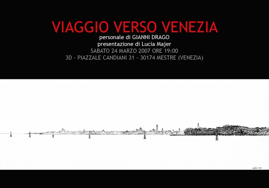 Il tema della mostra è il viaggio e i suoi disegni ne sono gli appunti che creano il racconto stesso. Ci sono lunghi paesaggi di mare, freddi e umidi, dove si intravedono sagome di persone intente nel lavoro. Ci sono tranquille ville bretoni, immerse nella natura selvatica della Normandia. E poi Pellestrina, con le bricole, ultima tappa del viaggio dell’artista verso Venezia. I paesaggi disegnati di Drago sono silenti e calmi, racchiusi nel limbo dell’immaginazione e del sogno, come fossero piccoli universi a sé stanti. Ripetono, senza ambiguità, il vivere intenso del luogo, riscattando il visibile dall’immagine monotona dello sguardo disincatato. I suoi disegni essenziali, a volte porzioni di architetture, sono un vero e proprio taccuino di viaggio in bianco e nero, dove i luoghi sono dipinti in maniera asciutta e poetica, come fossero scansioni della realtà.
