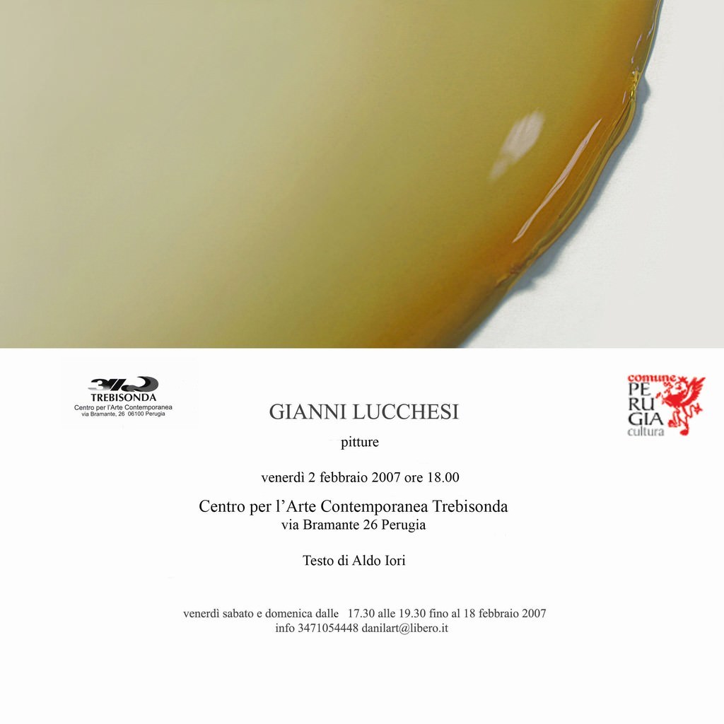 La mostra pitture dell’artista toscano GIANNI LUCCHESI (Pisa, 1965) allestita presso i locali dell’Associazione Artivisive Trebisonda in via Bramante 26 a Perugia (zona Sant’Erminio - Monte Luce) sarà inaugurata venerdì 2 febbraio alle 18,00.